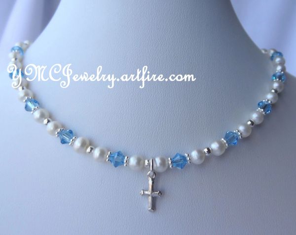 Flower Girl Necklace First Communion Necklace Freshwater Pearl Necklace Real Pearl Necklace Baby First Pearls Necklace Baby Pearls First Communion Baptism Flower Girl Confirmation Bridesmaid