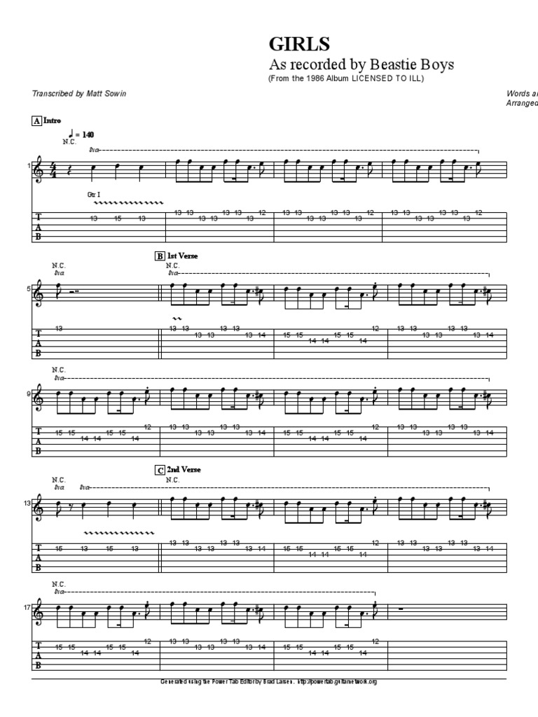 Girls Music Sheet And Notes By Beastie Boys Musicnoteslib Com