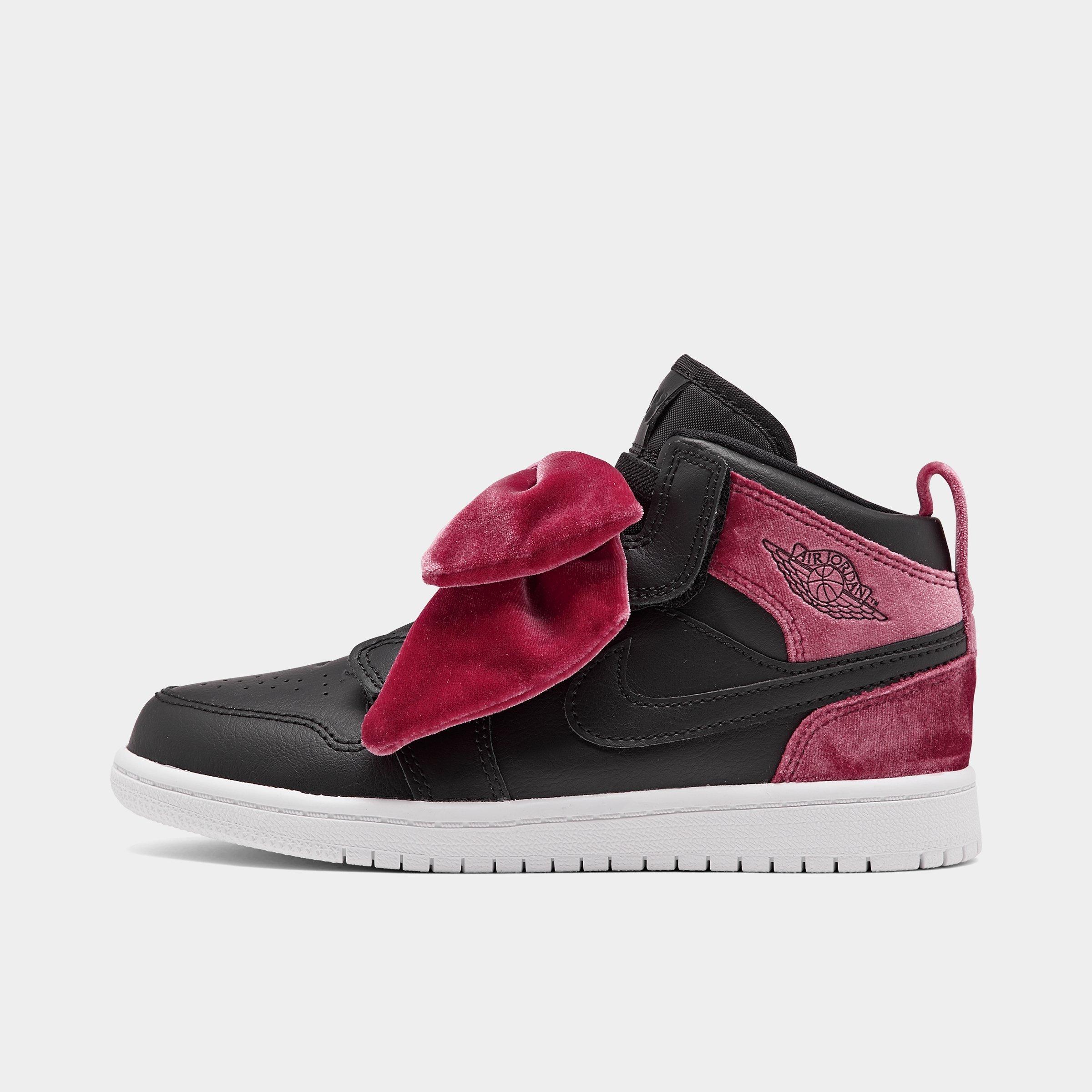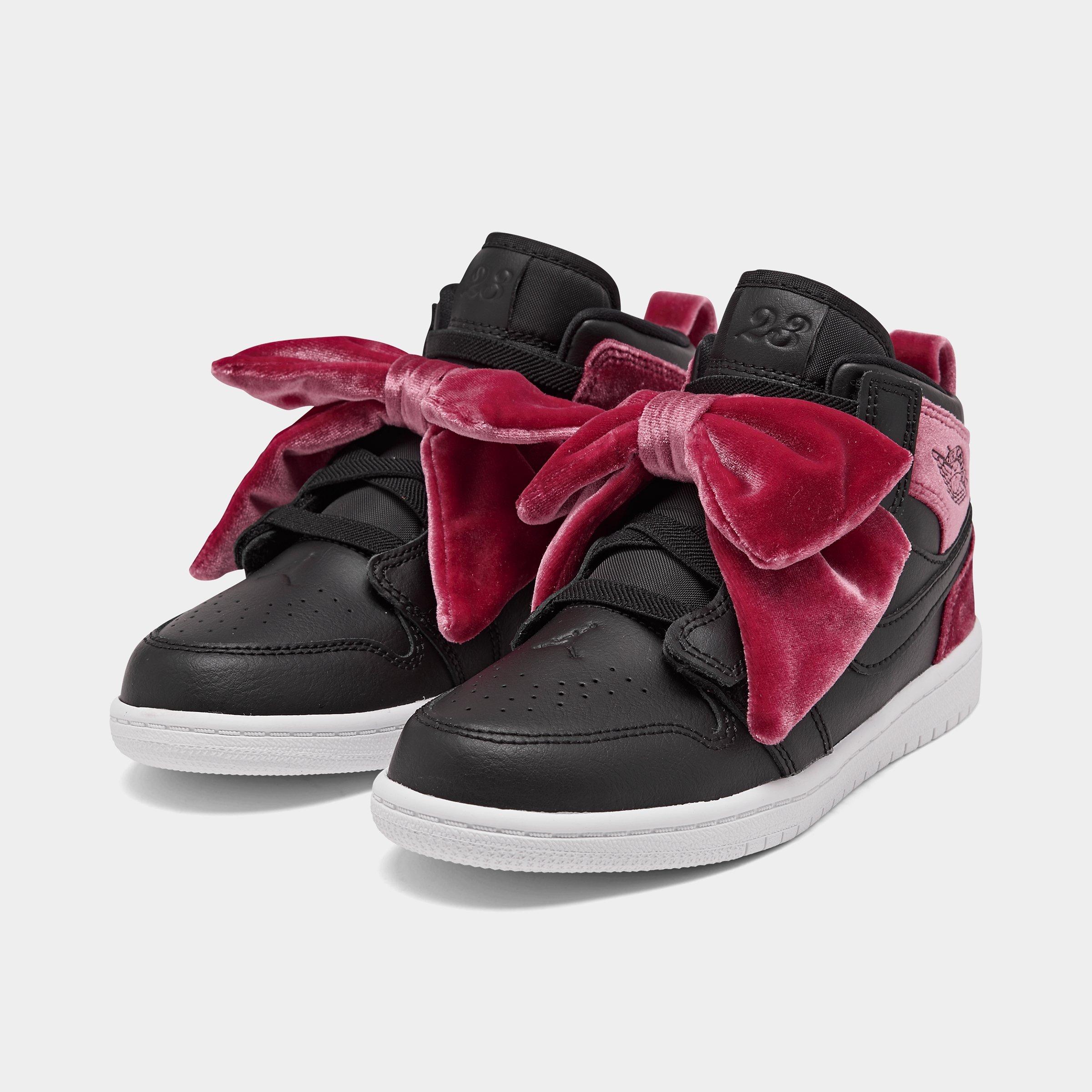 Jordan Air 1 Mid Velvet Bow Black Scarlet Preschool Girls Shoe Hibbett City Gear