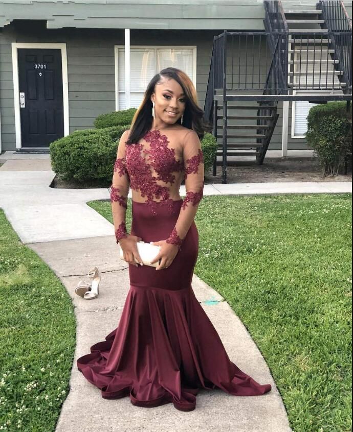 Sexy Sheer Long Sleeve Prom Dresses 2019 African Black Girls Backless Holidays Graduation Wear Evening Party Gowns Custom Made Plus Size Hi Low Prom Dresses Jr Prom Dresses From Babydress001 73 57 Dhgate Com